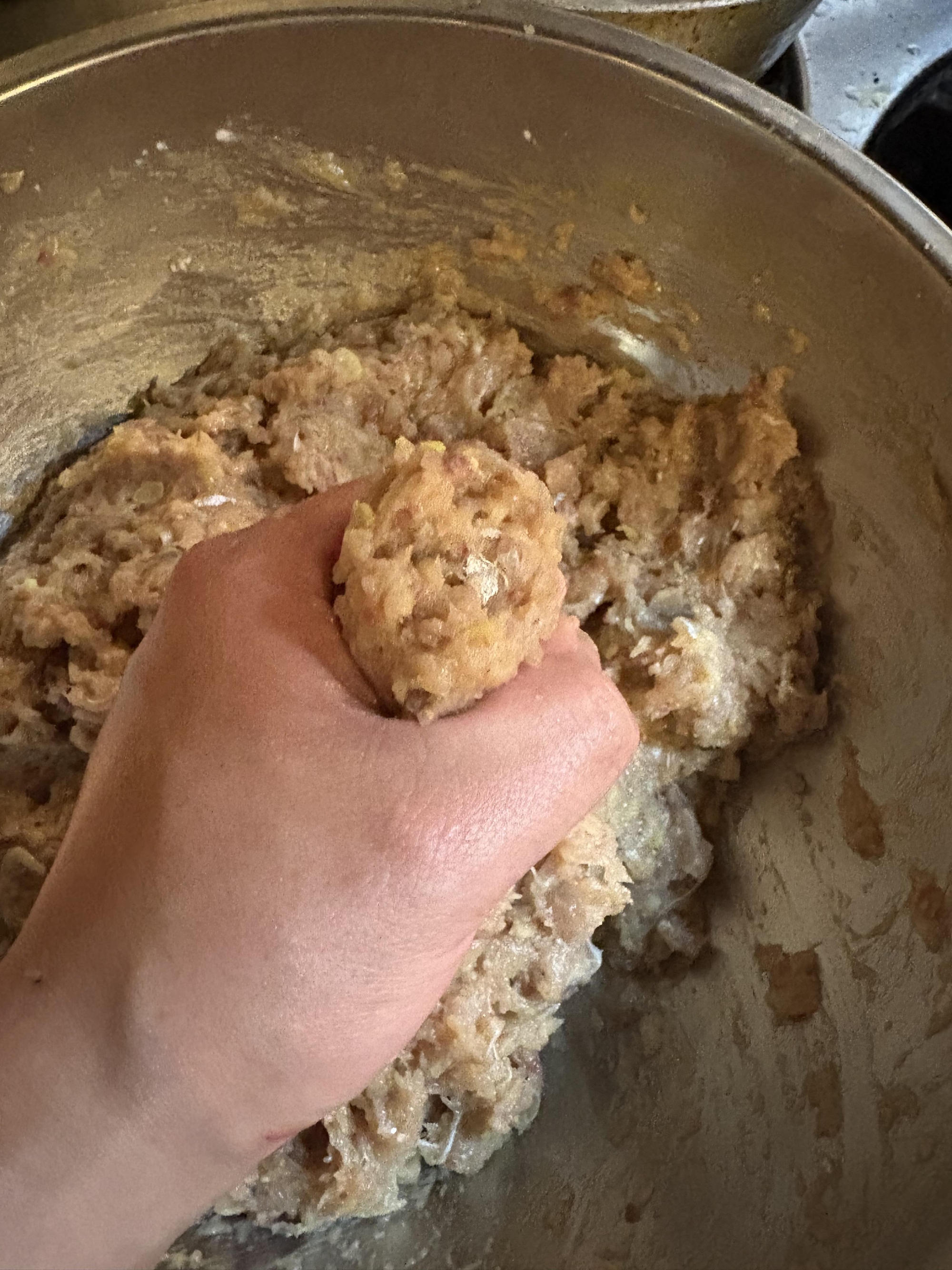 このように、つみれを丸く整えて、