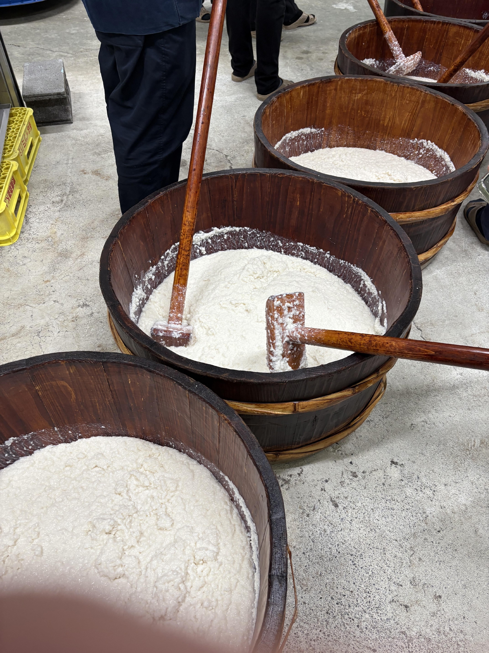 蒸米、麹、仕込み水を『半切り』と呼ばれる木桶に入れて、